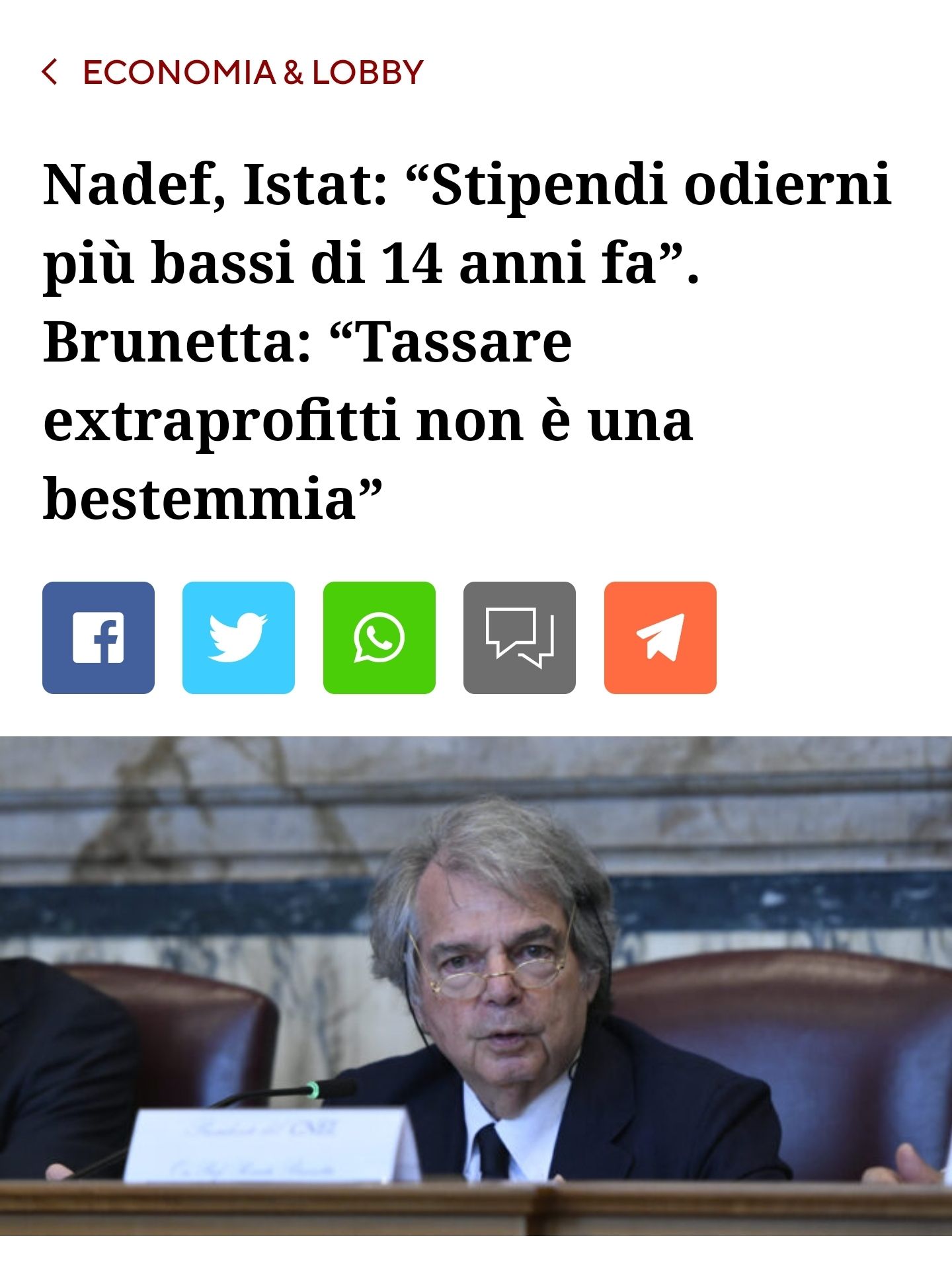 Brunetta: "Tassare extraprofitti non è una bestemmia"