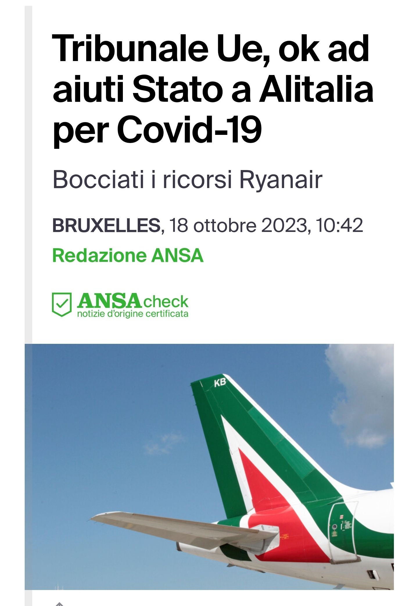 Bocciati i ricorsi di Ruanair contro gli aiuti di stato ad Alitalia per covid 19