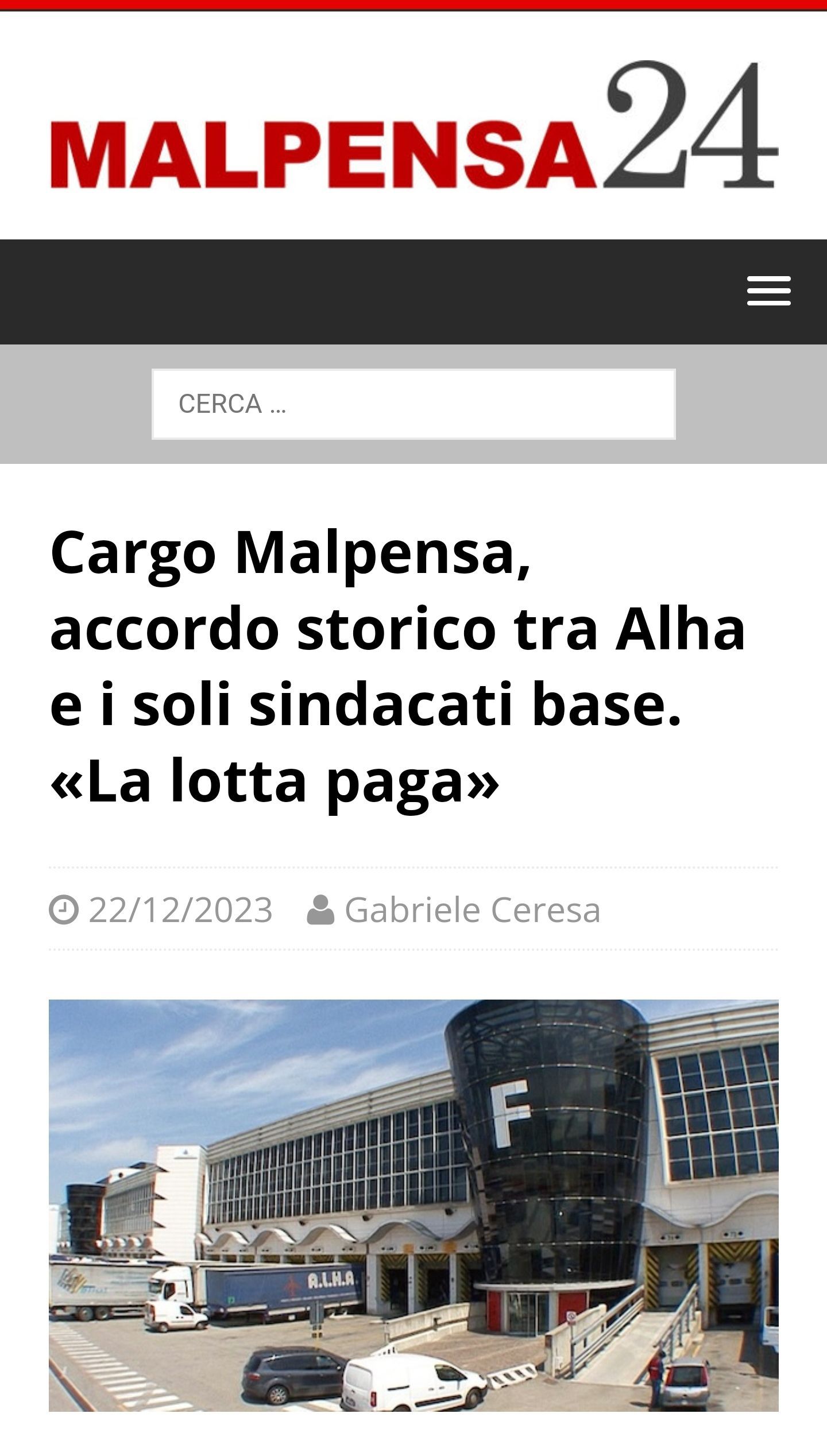 Cargo Malpensa. accordo storico tra Alha e i soli Sindacati di Base.