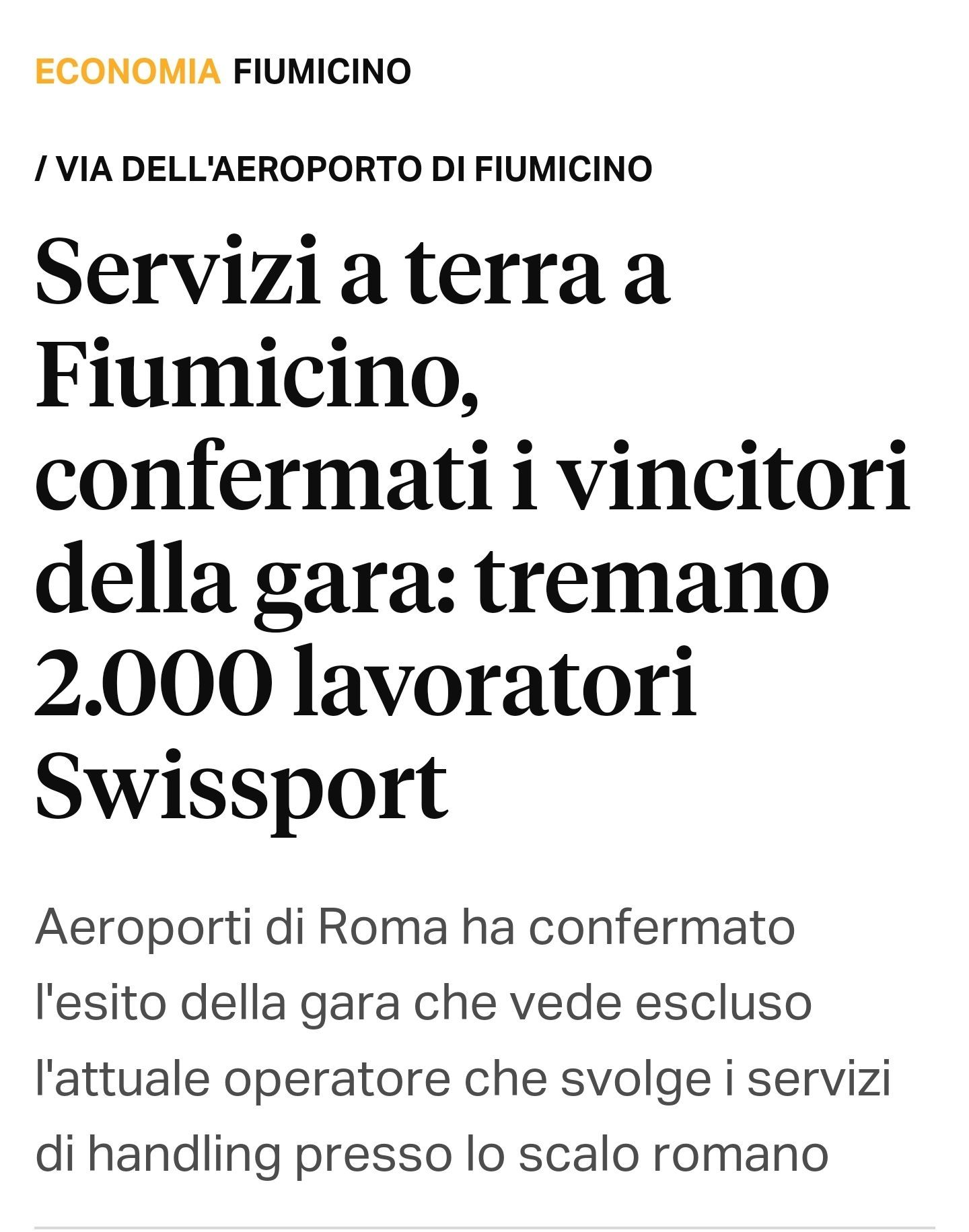 All'aeroporto di Roma Fiumicino, esce la società di Handling Swissport ed entra la società Airport Handling.